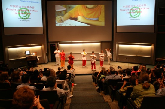 2010年7月4日至8月6日,印地安纳波利斯孔子学院成功举办了第三届IUPUI中国语言文化夏令营。本次夏令营为期5周,共吸引了近百名5-13岁的美国儿童参加。根据学生年龄和中文水平,分为小一、小二、中一、中二和大班五个班级,其中一班为零起点学生,二班为有中文基础的学生。这些学生们每一天从做中国第八套广播体操开始,之后开始学习中文听说、中文读写、书法、歌舞、手工游戏以及武术这六门语言和文化课程。该课程均由经验丰富的老师分别教授。课程动静结合,使小朋友们从不同角度感受着中国语言和文化之美。