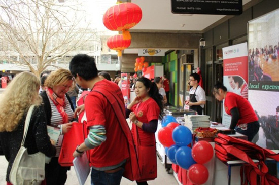 2013年8月25日,拉筹伯大学风景如画的校园里人流涌动,一年一度的校园开放日正在进行。这一天,来自澳大利亚各个地区近万名学生和家长都来到学校参观与咨询。这是一次难得的向大众尤其是未来的拉筹伯学生展示孔子学院,宣传汉语课程和中国文化,以及中国现代发展的机会。大学对孔院非常重视,专门在校园中心地带为孔院提供了展台。孔子学院为此进行了一个多月的筹备工作,招聘了学生志愿者,租借了LED显示屏,精心设计了宣传资料,准备了系列的宣传展示活动及精美的小礼品。