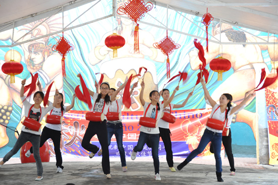 9月7日中午12点左右,伴随着一阵喧闹的锣鼓声,一支舞龙舞狮的队伍出现在了人群中,并将当地民众引到了热闹的活动现场,在各种欢呼声和掌声中,第五届秋季中国文化节正式拉开帷幕。在开幕式上,中国驻墨西哥大使邱小琪先生和贝尼托•华雷斯区政府社会发展部主任玛格丽塔•马丁内斯女士分别做了发言,他们不仅对本届文化节的举办表示了支持和认可,同时对中墨文化更全面、更进一步的交流表示了期待。随后,墨城孔院师生与使馆工作人员一起,为现场观众表演了一场精彩的中国歌舞秀,其中有红火的腰鼓表演、优美的民族舞蹈还有动听的中国歌曲以及独特的民族服装秀等。歌舞表演后,紧接着的还有精彩的武术表演和生动的中医讲座。整个开幕式可谓高潮迭起、精彩无限,台下的观众络绎不绝,掌声不断,现场十分热闹。