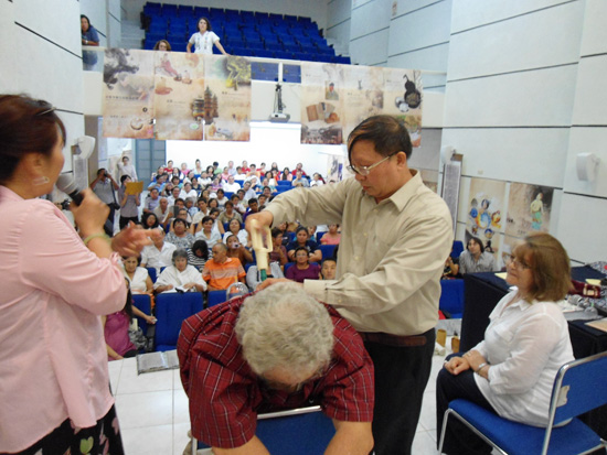 刘光瑞医生简要介绍了中国医学的基本理论和中国国家级非物质文化遗产项目“刘氏针灸刺熨疗法”的基本方法,与观众互动,回答问题,并邀请了10位观众进行现场诊疗,让观众亲身体验中医诊疗,现场观众爆棚,想要体验针灸诊疗的患者排起长龙。在面向医学院学生的讲座中,刘光瑞医生还将中医、印度医学和玛雅医学进行了对比分析,精到的见解引起了现场医学专家的共鸣。