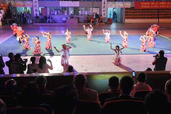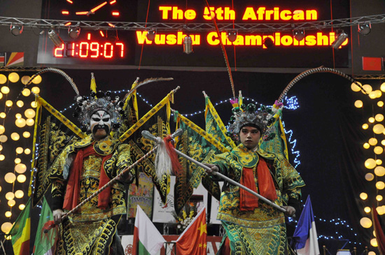 应马达加斯加武术协会主席高洪刚先生邀请,塔那那利佛大学孔子学院25名师生在开幕式上进行表演。孔子学院师生表演的本土风情舞代表马达加斯加人民欢迎来自十几个国家的运动员。汉语专业本科生表演的舞蹈《好日子》和《茉莉花》充分展示了当地青年学习中国文化的热情和成绩。中方教师盛装表演的京剧剧目成为此次开幕式演出的亮点之一,观众们在开幕式后排队与表演者合影留念。