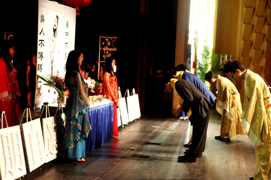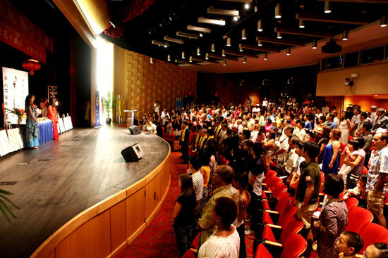 紧接着祭孔仪式的是颁奖典礼。在迈阿密地区的优秀中文教师、孔子学院优秀学生、圣托马斯大学优秀中国留学生受到表彰。最后,迈阿密达德学院孔子学院和山东同乡会携手为约五百名观众奉献了一台精彩纷呈的“欢度中秋佳节文艺晚会”。