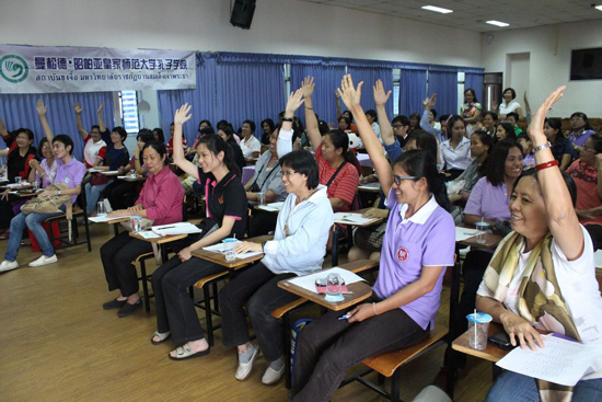 9月14日,泰国曼松德昭帕亚皇家师范大学孔子学院举办了“花好月圆,福满人间”中秋文化体验互动讲座。来自曼谷市教育局、曼谷周边地区的泰国本土教师、曼松德大学中文系学生共100余人参加了本次活动。这是曼松德孔院继春节、元宵、清明、端午、七夕之后举办的第六场文化专题讲座。