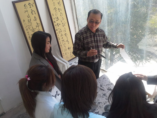 此次文化巡展共设置中国书法、中国乐器、中国瓷器、中国剪纸、中国古代服装秀、中国改革开放成就等六个展区。巡展活动分为三个部分,第一部分为中国乐曲,第二部分为中国古代服装秀,第三部分为中国器物文化观展。在第一部分,学生演唱了他们精心准备的三首汉语歌曲——《小酒窝》、《感恩的心》、《祝你一路顺风》,这些歌在中国人人耳熟能详,但在纳伦的文化活动中却是第一次响起它们的旋律,学生们熟练认真的表演引起观众们热烈的掌声,还有任铮老师现场用笛子与葫芦丝演奏的中国民歌赢获得了全场热烈的喝彩。第二部分的中国古代服装秀更是将活动气氛推向了高潮,平日只能在中国电视或电影中才能见到的中国服装这时已近在眼前,雍容华丽的盛唐襦裙服与大袖衫、典雅含蓄的白罗方心曲领与香云纱褶裙、还有温婉柔美的彩绸旗袍在古典与现代的背景音乐中追溯起五千年中国文化记忆。学生们身上或艳丽、或素净、或飘逸、或敦厚的华夏古韵锁住了所有在场者的目光,大家纷纷举起手机拍照,留下了一张张中国倩影。第三部分的中国文化器物展让来参观的师生和游客从不同层面与角度切身体会到中国文化的与众不同与源远流长。展品充分地反映了中国的古代遗存与当世面貌、山川河泽与社会风物、璀璨偶像与寻常百姓、经济成果与科技新阶。孔子课堂的邹阳阳、都晔军两位中国老师还逐一为好奇的人们耐心讲解。在活动场地的另一角,任铮老师正在为观众演示笔墨书法,这项传统艺术得到了许多纳伦人的喜爱,不少观众向任老师求字,他都一一赠之,这意外的活动纪念品使大家在结束本次中国文化之旅时又平添了一份欣喜。