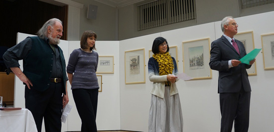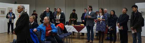 本次画展的开幕式在11月5日举行,班戈市长、艺术届人士、电影电视界人士、画届人士、班戈大学法学院、国际部、音乐学院、现代语言学院、商学院的师生、华人社会、社会各届50多位嘉宾受邀出席了开幕式。孔子学院执行院长大卫博士和中方院长张丽英教授分别用威尔士语、英语、中文向大家致欢迎辞,随后画家本人对英国19世纪以来英国几位老资格画家来访中国用他们的画笔描写中国社会景观、文化习俗等珍贵历史经历、以及他自己旅行中国、描画中国的感受作了精彩的讲述。同时,对此次孔子学院对他画展的支持表示了深深的谢意。