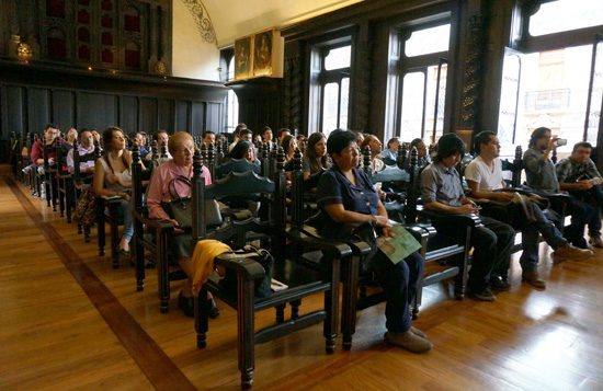 10月7日中午12点,“中国作家论坛”新闻发布会在享誉墨西哥文坛的西特拉尔特佩特尔文人之家(Casa Refugio Citlaltepetl)举行,墨西哥国立自治大学孔子学院中方院长孙新堂、中国诗人蔡天新、墨西哥城第二届国际诗歌节组委会主席曼努埃尔•库奥特勒和墨西哥城政府文管会负责人里卡多•巴乌蒂斯塔、孔子学院师生及墨城文学爱好者共百余人出席。发布会开始前,墨西哥当地电视台22频道的记者对蔡天新进行了采访,蔡天新介绍了自己的创作心得,并朗诵了自己的诗作。