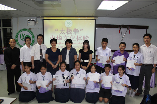 武术文化是中国文化的瑰宝,太极拳文化又是中国武术文化的典型代表,同时,我院陈国灯老师为陈氏太极拳的正宗传人,在太极拳文化讲解和太极拳教学方面有着丰富的经验。陈国灯老师首先通过讲解、视频、亲自演示的方式让学习了解太极拳,分别精选了国内青少年太极拳表演的精彩片段,让他们看到同龄人学习太极拳的成果,激发他们学习的兴趣;接着,学生被分为两组,轮流体验太极剑和临摹太极拳招式。学生们兴致盎然,一招一式地模仿着老师的武术动作,亲身体验了一把中国功夫。初中二年级的学生Kantapo Poompuang说道,中国功夫太厉害了,我要好好学习中文,将来到中国的少林和武当走一走,看一看。最后,到场的领导和老师对绘画作品进行评选,对获奖的学生给予奖励。整个活动紧紧围绕“让学生在快乐中学习,在学习中得到快乐”以寓教于乐的形式让文化活动开展富有成效,有声有色。