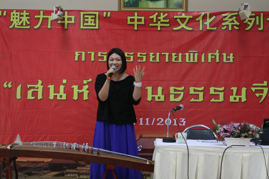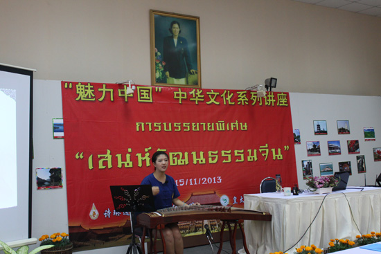 11月15日,皇太后大学孔子学院举行“魅力中国”中华文化系列讲座,孔子学院中方院长叶虎,河池学院文学与传媒学院责任教授覃觅,孔子学院志愿者老师陈超然和成玥为泰北师生带来四场中国文化大餐,参加讲座的师生及当地民众达到800多人次。