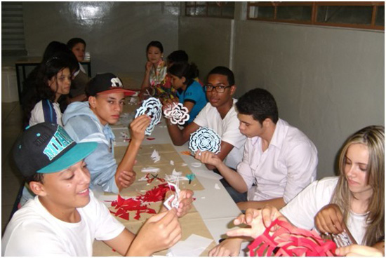 在热闹的开场之后,汉语教师志愿者们将当地学生分为四组,分别向学生展示中国汉字书法,茶艺,剪纸和中国风貌纪录片,并且邀请圣保罗州立大学学生讲述她们在中国做交流生的经历,让他们以切身体会讲述他们眼中的中国。如“流水席“的中华才艺展示,让学生大开眼界,所有的学生都参与进来,和汉语志愿者老师们一起写书法,剪纸,品茶,欣赏中国电影、音乐和风土人情。