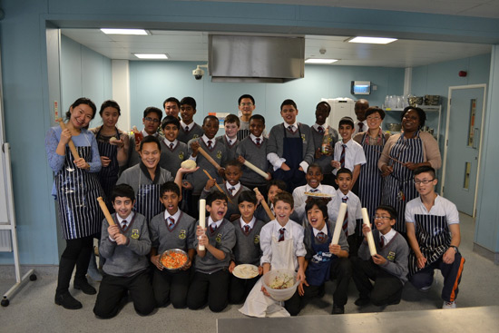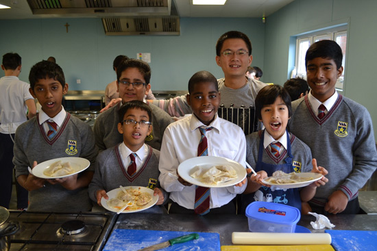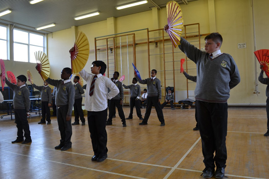 2013年12月10日和12月12日,伦敦中医孔子学院工作坊小组走进圣约瑟夫中学,举办了32场精彩绝伦的中国文化饕餮盛宴, 受到了圣约瑟夫中学师生们的热烈欢迎。此次工作坊包括饺子、书法、剪纸、功夫扇等丰富多彩的文化活动。学生们被博大精深的中国文化深深吸引。饺子工作坊中,学生们纷纷跃跃欲试,从和面、擀皮、包饺子到煮饺子,都一一参与其中。当学生们尝到自己包的饺子时,兴奋地表示饺子太好吃了,一个劲儿地称赞中国厨艺的奇妙。功夫扇工作坊中, 学生们兴奋而专注地模仿着老师的动作;有板有眼的一招一式,颇具中国功夫扇的风采。剪纸和书法工作坊中,学生们也兴趣盎然。栩栩如生的剪纸作品和像模像样的“功夫熊猫”“中国”“英国”“功夫”“茶”等书法字表达了他们对中国文化的喜爱。