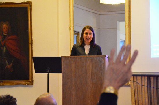 荷雅丽博士首先为观众介绍了圆明园建造的历史和现状,她先结合大量图片向观众们展示了圆明园昔日的景象,从营建之时起,圆明园经历了数百年的变迁,多位皇帝在园中进行过大规模的营建和改扩建活动,圆明园各景区在不同时期的风貌不尽相同。由于圆明园在第二次鸦片战争期间曾遭遇浩劫,被彻底损毁。虽然后来对圆明园进行了许多修缮工作,但至今昔日辉煌灿烂的圆明园亦只剩下一片废墟。目前清华大学古遗迹数字化研究中心正致力于研究对文化遗产数字化保护与展示,他们使用各种高端的数字技术,将圆明园的精美建筑和园林风景进行了完美的数字复原。