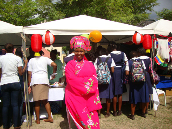 牙买加时间11月21日上午,牙买加西印度大学莫纳分校孔子学院中方院长卢绍刚教授、教师以及学生代表一行五人应邀参加牙买加理工大学组织的“国际文化日”活动。该活动是牙买加理工大学每年十一月组织的文化推广活动,旨在向本校师生、牙买加所有中学生以及社区展示该校的国际化程度,提高学校知名度,并吸引优秀的学生来该校学习、进修。今年“国际文化日”上,除中国展位外,还有法语联盟、韩国、日本、古巴、法国等多个国家。