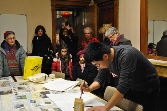 在中国书法体验环节,中国留学生沈成硕同学手把手地教小朋友们中国毛笔的握笔方式,并展示了“中国”、“法国”和中国数字等简单的中国汉字的写法,大家也纷纷踊跃体验,在一横一竖间体味中华文化的魅力。
