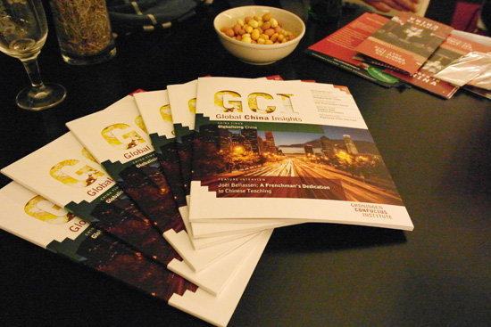 主持人郝翠首先向大家近一年来对汉语学习所付出的努力表示感谢,并简要地回顾了格罗宁根孔院在2013年度所举办的大型活动及主要收获。其中,举办汉语日活动、走近中国系列活动、《全球中文洞察》第二期顺利出版发行,以及成功建立三所孔子课堂等事宜均引来大家赞叹的目光。作为第二期《全球中文洞察》的首发仪式,郝翠现场采访了高级编辑John Goodyear以及编辑Ingrid ,他们从不同的视角向观众们介绍了整部杂志的初衷、创新以及独到之处,给与会者留下了深刻的印象。