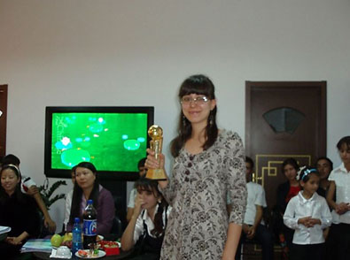 中秋联谊晚会从下午三点正式开始,孔子学院中方院长首先向学员们介绍了孔子学院近年来的发展,对在过去的一年里表现突出的学员进行了表彰与奖励,同时鼓励学员们继续努力,学好汉语。随后,曾经代表塔吉克斯坦赴中国参加汉语桥比赛的狄丽婕同学特邀向大家展示了自己的获奖成果,并以其亲身经历,鼓励大家学好汉语。