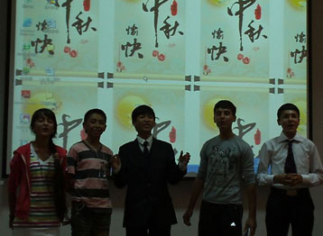 在晚会的第二部分,围绕着中秋的主题,学员们一边品尝孔子学院为大家精心准备的月饼,一边尽情表演自己准备的节目。他们或者登台讲述自己所了解的中国和中秋节日,或者一展歌喉,演唱自己在孔子学院学到的中文歌曲。在随后的游戏互动环节中,大家同样积极踊跃,整个现场充满了节日的欢乐氛围。