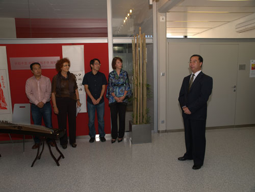 为了与国内同步,本次酒会在当地时间下午2点开始,与会嘉宾一起远程收看了央视中秋文艺晚会开幕表演。2点15分,杨建中参赞、经济学院院长杜尚先生先后致欢迎辞,向大家表示节日的祝贺,并希望孔子学院在斯洛文尼亚越办越好。
