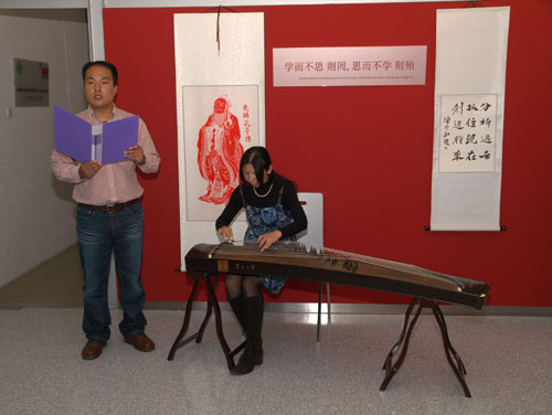 孔子学院斯方院长达尼叶拉女士用斯语详细地介绍了中秋节的历史由来、节日风俗以及月饼的做法。孔子学院的老师和当地留学生代表纷纷表演了古筝弹奏、诗词朗诵、民歌演唱等传统文艺节目。