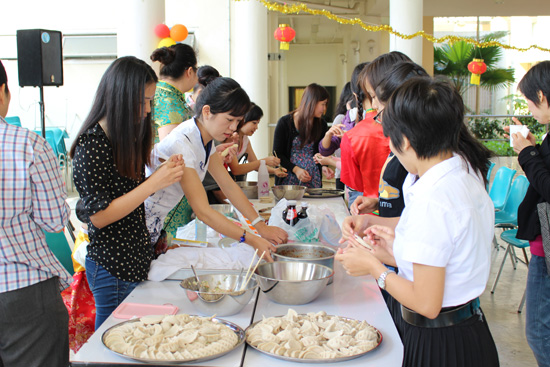 活动开始前,孔子学院邀请所有到场嘉宾一起包饺子,感受中国新年的气氛。大家携手合作,共同制作饺子,虽然包出来的饺子形状各异,但是大家乐在包饺子的过程中。