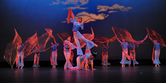 本场晚会中的舞蹈节目也精彩纷呈,既有中国民族风情舞蹈,又有西方热情奔放的拉丁舞;其中儿童舞蹈“兔气扬眉”,再现了一群活泼可爱的“小兔子”———或畏缩,或机灵,或憨厚,或俏皮,将欢乐气氛展现得淋漓尽致;而创意舞蹈《回娘家》,则是由六位男演员身着特制的黑白对半演出服,通过肢体语言表达新婚的小媳妇儿回娘家的表现,让人忍俊不禁,观众们都被逗得开怀大笑。最受到观众们一致好评的当属蒙古族舞《月狐吟》,三位舞者摇曳的身姿生动得展示了皎洁的月光下,三只美丽的“狐狸”以轻盈的肢体语言欢舞着自己灵动的身体,对月自吟,曼妙幽婉的舞姿将狐媚、精灵演绎得惟妙惟肖、绚丽妖娆,舞台的音响及灯光效果的配合更使整场舞蹈都显得美轮美奂!