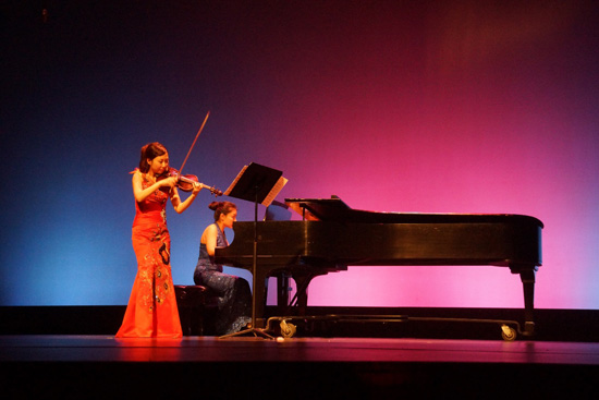 随后,一系列精彩的歌舞节目相继登场,令台下的观众们目不暇接。既有轻松活泼的民乐合奏,又有精致抒情的弦乐四重奏,而最别具一格的当属曾晶的小提琴独奏。曾晶,在美国菲尼克斯交响乐团任第一小提琴演奏员的她为大家演奏了新疆之春和查尔达斯舞曲,使全场观众沉浸在了音乐的圣殿,偌大的会场瞬间静谧下来,似乎所有的观众都屏住了呼吸,不忍打扰美妙的音符在空气中的畅快流动,演出结束后,观众们起立鼓掌,经久不息。