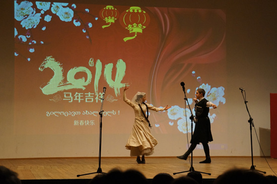 2014年1月27日,第比利斯自由大学孔子学院举办春节联欢晚会。中国驻格鲁吉亚大使岳斌、格新任驻华大使阿普奇阿乌里、自由大学校长奇科瓦尼、中外汉语师生、家长等400多人观看了本次演出。