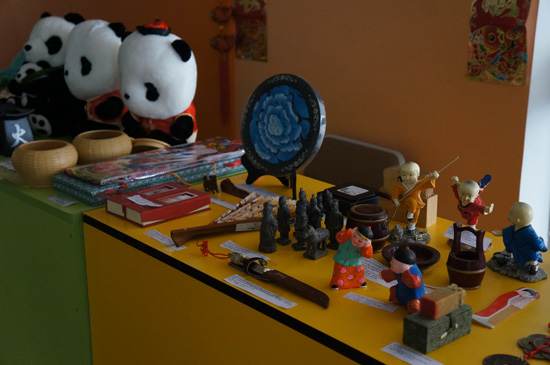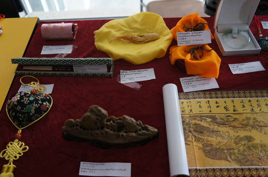 值得一提的是,晚会开始之前,自由大学孔子学院还精心准备了“中国春节民俗文化展览会”系列活动,现场进行大型舞龙表演,不同主题文化展览。展品琳琅满目,玉石、书画、象棋、围棋、刺绣、折扇、人参、冬虫夏草等一大批蕴含浓厚中华文化底蕴的艺术精品博得了人们的纷纷赞赏。汉语教师志愿者们也借着讲解展品的机会,进行了相关的汉语教学和中华文化宣传。展览会还为大家奉上了精彩的舞龙表演,一股沁人心脾的“中国风”弥漫在整个会场。