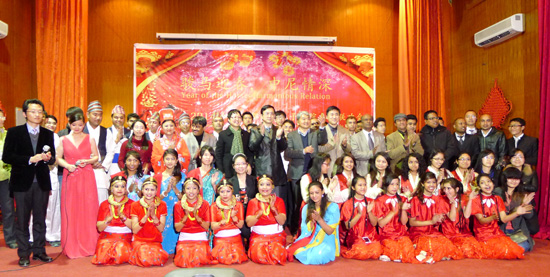 联欢会上节目丰富多彩。舞蹈《西域风情》和《Ri San Fi Li Li》点燃了观众的激情,黄梅戏《谁料皇榜中状元》和气贯长虹的中国武术将晚会推向高潮,歌曲《快乐老家》、《我的歌声里》、《我们的尼泊尔》、《北京欢迎你》等歌曲赢得了阵阵掌声,诗朗诵《再别康桥》、手语舞《感恩的心》等深深地打动了观众。