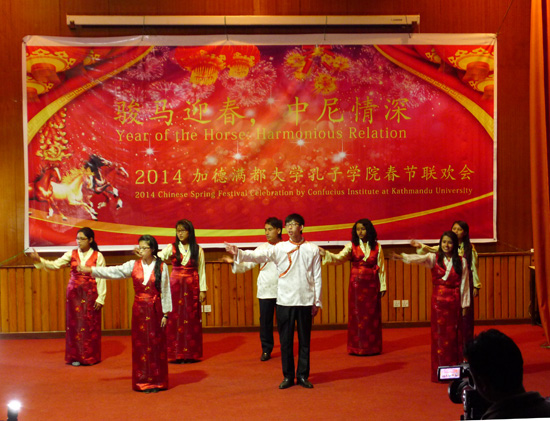 加德满都大学孔子学院已经连续成功举办了六届春节联欢会。对于本次联欢会,孔子学院不仅对联欢会策划方案进行了多次讨论修改,还屡次到表演现场勘查、排练和布置。联欢会取得了圆满成功。