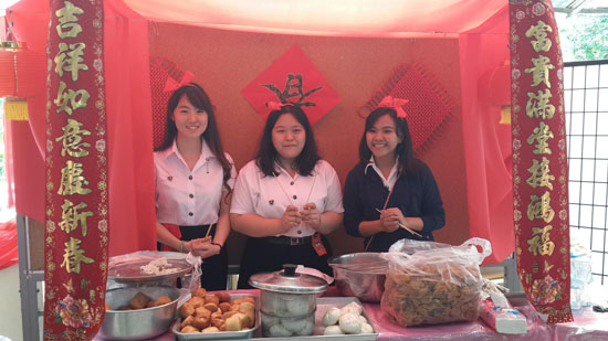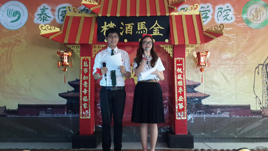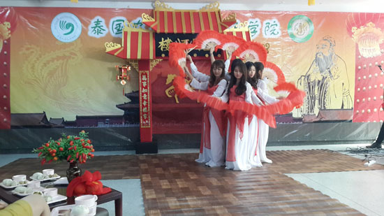 1月29日,泰国农业大学孔子学院与农业大学中文专业联合举办2014年春节联欢会。泰国农业大学人文学院东语系主任Assoc.Pranee Jongsutjarittam、日本教师、孔子学院中方院长高惠敏、泰方院长林勇明、泰方副院长中文系主任林文修、高锦榕以及孔子学院全体中泰方教师、志愿者、农大中文专业及外专业学生近200人参加本次春节联欢会。