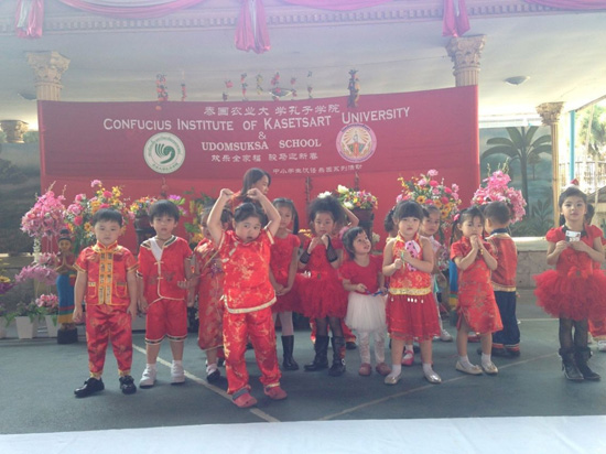 1月28日,泰国农业大学孔子学院与曼谷Udomsuksa school举办“欢乐全家福,骏马迎新春”大型春节联欢活动。农大孔院中方院长高惠敏及教师、学校校长Dr. Kamol Wan、学校幼儿园、小学一、二、三、五、六年级、部分初高中生以及来自北欧、非洲、美洲的400余名师生及学生家长,共同庆祝中国新年的到来。清迈大学孔子学院中方院长俞勤伟先生、朱拉隆功大学教育学院邵力敏博士,应邀参加班次活动。