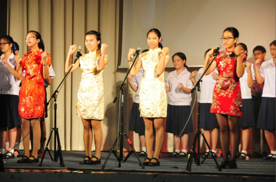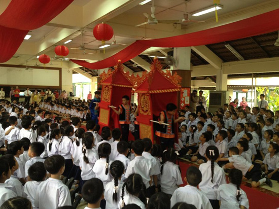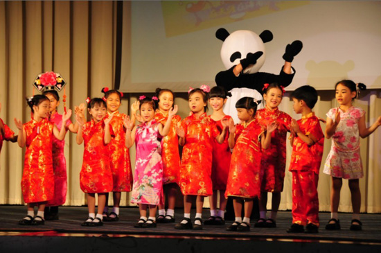 当天,小学部也举办了“新春庆祝会”活动。庄严的音乐声响起,扮成“皇帝”和“皇后”的同学坐着轿子出场了,接着,“大臣”宣读了恭贺新春的“圣旨”。这样特别的开场方式真是让大家眼前一亮、啧啧称赞。随后,身着旗袍、手执红扇的8名女同学缓缓上场,舞了一曲《菊花台》。受邀前来的志愿者老师邓肖波粉墨登场,唱起了婉转悠扬的京剧,并为师生们做了京剧文化介绍。不甘示弱的小朋友们也装扮起来,表演了《说唱脸谱》。