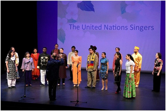 活动的压轴戏是联合国工作人员组成的合唱团带来的精彩表演。来自不同国家的演员们身着各民族盛装,表演了《茉莉花》等三个曲目,或低徊浅唱,或引吭高歌,优美的领唱、诙谐的指挥,精妙绝伦的和声,将活动推向了高潮。