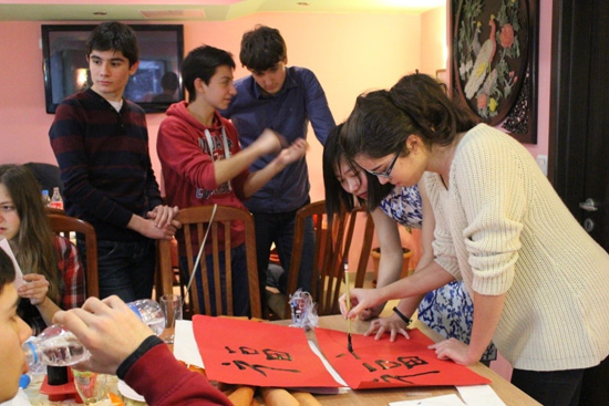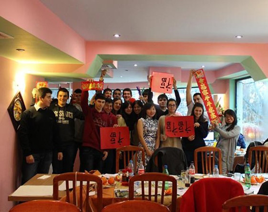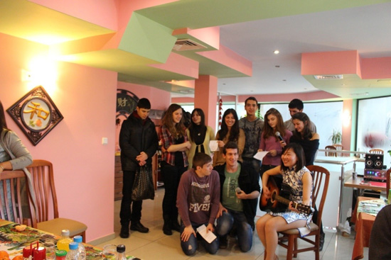 2014年1月25日,保加利亚瓦尔纳市数学高中学生和学生家长共三十余人冒着风雪严寒来到金龙中餐馆,和三位志愿者老师齐聚一堂,共同庆祝中国马年的到来。活动由瓦尔纳汉语教师志愿者郭贝娜组织策划,并获得了来自特各维式特市的蒙林英老师和和舒门市的刘娜老师的大力帮助和支持。数学高中校长Pavlin Petkov也送来了他对师生的新春祝福。