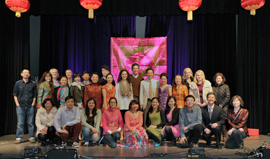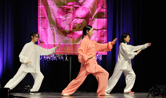 为了增添春节晚会的节日气氛,波州大孔子学院的老师们也精心编排了文艺节目来助兴。由波州大孔子学院太极课教师高琦女士率领的太极表演团队为观众们展示了“简化24式太极拳”。柔中带刚、飘逸潇洒的动作,博得了大家的一致赞叹。小合唱《今夜无眠》掀起了台上台下同唱一首歌的高潮,最后整台晚会在歌曲《难忘今宵》的熟悉旋律中缓缓落下帷幕,观众和演员们一起合影留念,为2014年马年春晚划上了圆满的句号。