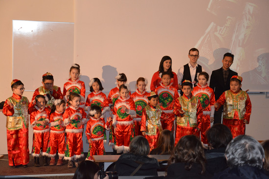 本次春节活动日从2日上午十点半开始,Sainte-Thérèse小学的学生们以两首中国儿歌合唱开场。第一首《新年好》很快点燃了新春的气氛,随后身着唐装的小朋友们又为观众们献上一首《我是一条小青龙》,赢得观众们的热烈掌声。