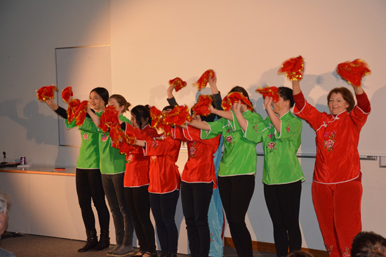 下午的演出更加精彩,不仅有学习中文的法国学生们自导自演的小品剧《我与中国的邂逅》,还有各国学生一起呈献的中国民族舞表演、中国功夫表演。能容纳两百多人的演出大厅座无虚席,不少观众甚至在过道中站着观看表演。节目最后由中国交换生们带来的中国现代舞《致青春》则将本次活动推向了高潮,现场观众掌声雷动,喝彩声、欢呼声、笑声让大家过上了难忘的中国年。