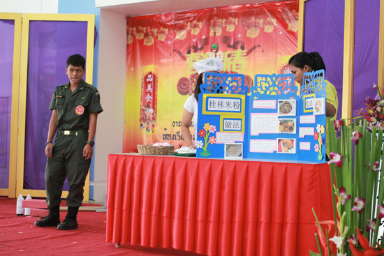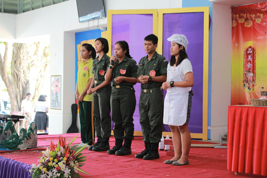 其中,“春节,我们去哪儿”中国美食美景介绍和“汉语小导游服务站”展览是在2013年7月的“汉语小导游培训班”基础上创新设计的,参加本次大赛的有来自洛坤府农业职业技术学校和育婷文隆学校,加上普吉当地各中学共九组学生为大家介绍了贵州黄果树大瀑布、广西桂林、四川乐山、内蒙古大草原、福建客家土楼等旅游景点和老干妈、辣子鸡、桂林米粉、四川火锅、龟苓膏、马奶酒等中国美食;美食美景介绍环节,学生们多采用了喜剧表演的形式,表演精彩纷呈引得在座的嘉宾和师生们欢笑满堂,真正说得上是开心过大年!最后,来自普吉中学的《武陵外传》和《贵州大瀑布》获得了比赛的第一名,来自洛坤府育婷文隆学校的《广西桂林》落得第二名。来自宋卡王子大学大学普吉孔子学院的黄蓉老师和素叻府农昌中学的杜若溪、廖慧敏老师担任了本次比赛的评委,他们表示本次中国美食美景介绍比赛的形式独特,学生们独具匠心的设计和表现让人印象深刻,同时通过话剧和展览的形式也让大家看到了泰西南地区中学与职业学校汉语教学的新发展和学生们汉语表达能力的提高。