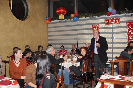 联欢晚会持续了3个多小时,会场气氛十分热烈。卢布尔雅那大学汉学系米加教授即兴为大家讲解十二生肖和“年”的由来,引领嘉宾们走进传统中国悠长而充满绚丽色彩的历史长廊,亲身接触到浓郁的中国文化,感叹中国文化的精彩与博大精深。