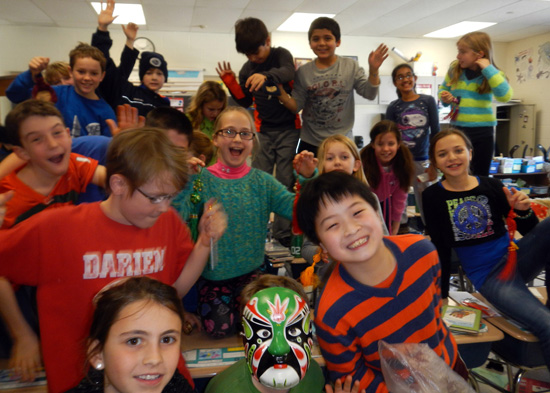 2月6日,康涅狄格州Hindley小学的四年级教室里挂起了中国灯笼和中国结,喜气洋洋。小朋友们围绕在孔子学院中方院长屠理理博士的身边,热闹非凡。屠院长首先给孩子们分发了中国红包,红包里是代表压岁钱的元宝和铜钱的巧克力。之后向美国孩子们介绍了中国的地图、国旗、长城、熊猫、十二生肖和春节习俗等,并教他们用中文说“新年快乐”、“恭喜发财”等祝福语。孩子们对中国的好奇心非常强烈,争先恐后地提出各种问题,屠院长一一予以解答。孩子们还享用了极富特色的中国美食—饺子和春卷。最后给孩子们分发了春节礼物,包括京剧脸谱面具、福包、书签和中国结等。孩子们开开心心地过了一个中国年。