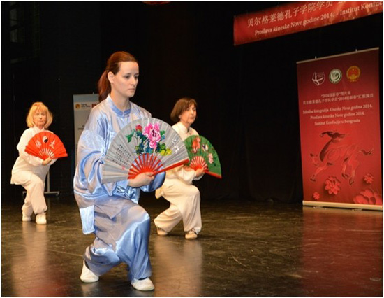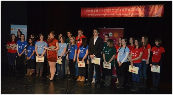 贝尔格莱德孔子学院于2014年2月8日在贝尔格莱德艺术大学戏剧艺术学院剧场举办了迎新春晚会和“迎新春”图片展。首先由张万学大使、塞中友协主席、前驻华大使翁科奇先生和贝尔格莱德孔子学院院长普西奇教授为图片展揭幕,然后贝尔格莱德孔子学院的学员们为来宾献上了一台精彩的文艺演出。参加晚会的还有塞尔维亚外交部部长助理乌道维契可大使、中国驻塞尔维亚的文化参赞徐鸿先生、教育组一秘孙新泉教授以及使馆其他工作人员、塞尔维亚中直机构的工作人员、中国留学生、华人华侨和塞尔维亚各界来宾等500多人。