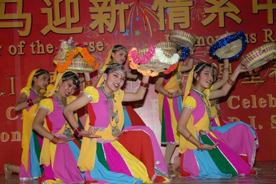 联欢会的节目丰富多彩、精彩纷呈,来自尼泊尔LRI国际学校孔子课堂、GEMS学校和The Global Academy of Tourism & Hospitality Education学校的学生们共同为大家带来了中国扇子舞、中国独舞、中文情歌对唱、中文手语歌、中文歌伴舞、男生合唱、剪纸、旗袍秀等共12个节目,晚会现场气氛高潮迭起。