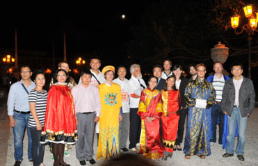 晚7时许,第二项活动开始,意大利朋友纷纷穿上中国传统服装,在帕多瓦古老的街道上行进展示,国旗导引,院旗跟随,吸引了众多市民驻足观看,一些市民还进行了拍照和录像。