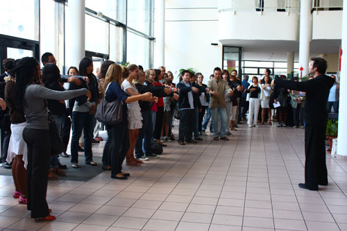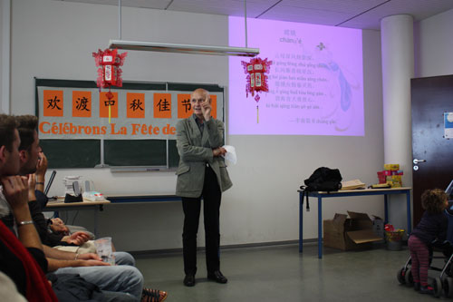 2010年9月25日上午11点,伴随着拉罗谢尔孔子学院中方院长韩祝祥先生中秋佳节的致辞,2010年孔子学院中法师生中秋节诗歌朗诵联欢会拉开了序幕。