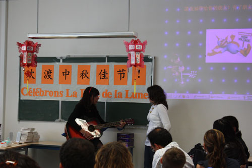 中秋节是中华民族的传统节日,团圆一直是其主题,这次联欢会把中法师生团圆在一起,更好的宣传了中国的文化,也使法国的汉语爱好者更多地了解中国。