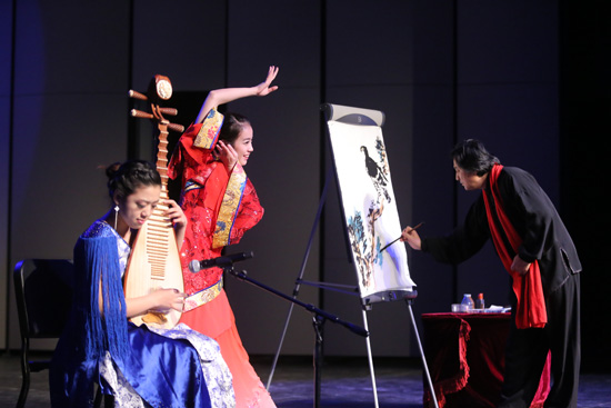 同时,东北师范大学艺术团在多曼艺术厅为托列多大学师生带来了精彩的演出。艺术团用歌曲、舞蹈、武术、书法、器乐演奏等喜闻乐见的形式,使大家近距离感受中华传统文化的魅力,亲身领略中国文化的深厚底蕴,同时抒发了对中美关系美好明天的深情期盼。孔子学院学员Scott Ballard给大家带来了精彩的中文歌曲;孔子学院学员Rachel Johnson用流利的中文和英文为大家介绍了演出的相关内容,他们的精彩表现更是为本次演出掀起了一个又一个的高潮。