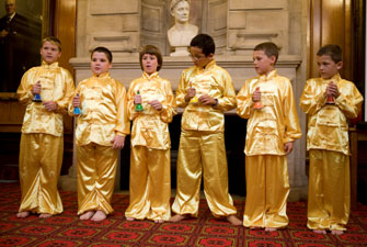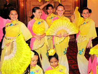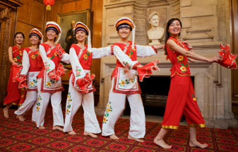 当晚,格拉摩根大楼贵宾厅张灯结彩,这座卡迪夫著名的西方古典建筑由于东方饰品的装饰而焕发出一种文化交融的特殊美。孔子学院外方院长Richard Evans博士首先致辞,向当地政府机构与社团对孔子学院的大力支持表示感谢,并通报了孔子学院近期举办的活动。由卡迪夫大学中国姑娘们带来的一支欢快的白族舞蹈《大理三月好风光》揭开了晚会文艺演出的序幕。六位中国姑娘身穿白族服饰,载歌载舞,展现了浓郁的中国少数民族风情。身着中国服装的八位来自Lansdowne Primary School学校的英国少年用中文表演了男声小组唱,歌词字正腔圆,博得了全场阵阵掌声。晚会的另一亮点是由卡迪夫大学中国留学生表演的中国民族舞 “串烧”。姑娘们身着不同风格的民族服饰,翩翩起舞,展示了中国不同民族的风采。她们的古典红绸舞、傣族舞、朝鲜舞、新疆舞等给全场贵宾带来了美的享受,令观众称赞不已。晚会的后半场是别具一格的“博饼”游戏,这是厦门市及周边地区特有的风俗,是家人与朋友欢聚中秋节的一项娱乐活动。由于卡迪夫市与厦门市是姐妹城市,在去年的中秋活动中,孔子学院引入了这一项目,广受欢迎。今年,厦门大学为支持此活动,特地为孔子学院赠送了月饼,孔子学院也精心准备了各种礼物作为奖品。中方院长傅似逸教授向外国朋友介绍“博饼”的渊源、寓意及游戏规则等。全场贵宾无不兴趣十足,积极参加,至九点半晚会结束时仍意犹未尽。