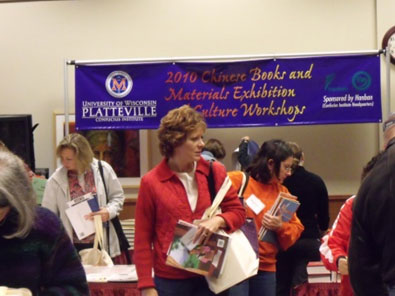 2010年9月25日,“中国书展暨文化工作坊”活动在威斯康星大学普拉特维尔校区的学生活动中心成功举办。书展展出了由国家汉办、孔子学院总部赠送的1000余本汉语教学和中国文化图书。前来参加书展的有来自威斯康星各学区的教师、威斯康星汉语教师协会的会长及各界代表等。与书展同时举办的还有36场中国文化工作坊,分12个主题展开。工作坊的主题有汉语简介、听音乐学汉语、中国历史地理、中国节日、中国旅游、中国结、剪纸、皮影戏、魅力苏州、太极、中国民族、中国书法等,活动从上午9:00持续到下午4:00。很多教师感到通过当天深入而丰富地中国文化学习,受益匪浅,并计划今后把这次精彩活动中所学的知识和获得的教学资源向学生们介绍,以进一步推广中国和中国文化。