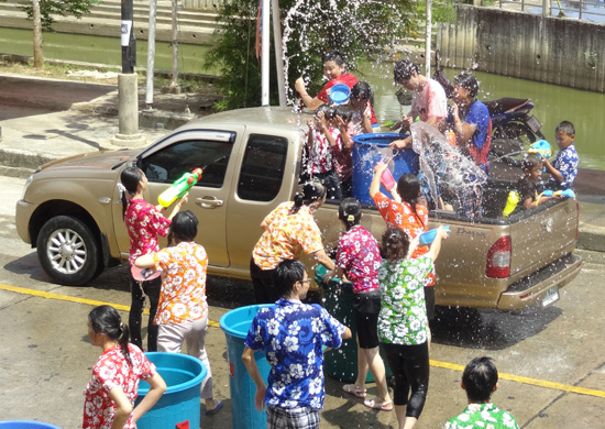 体验完了中国文化,该是人人翘首企盼的泼水活动了。把充满祝福的水泼向身边的每一个人,把美好的祝福洒向身边欢声笑语的人们。大家你一瓢我一瓢,你一桶我一桶,在水中嬉戏、打闹,尽管全身湿透,依然喜笑颜开。泼水嬉戏环节吸引了很多游客驻足观望,按捺不住也参与到大家的“混战”之中。