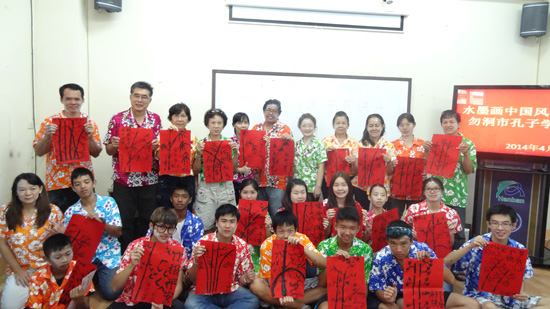 4月13日,勿洞市孔子学院成功举办“中国墨竹绘出别样宋干节”活动。勿洞孔院泰方理事、学生会代表、本土汉语教师、汉教志愿者、大学生、留学生代表以及各中小学学生等40余人参加了此次活动。